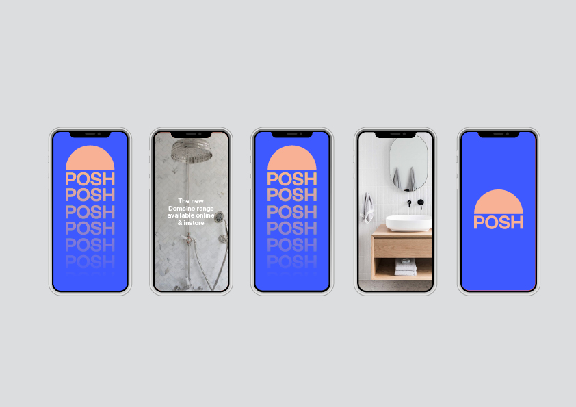 Posh is one of Australia's leading suppliers of bathroom and plumbing products with over 450 varieties within the range. Inspired by both shower head, bath and vanity, this proposed identity is minimal, bold and easily adaptable across the four sub ranges within the Posh family.